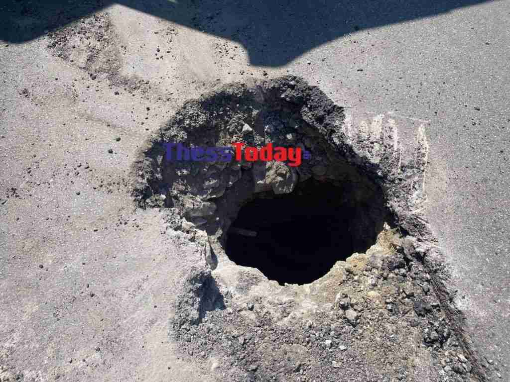 Σήμερα το πρωί οδηγοί παρατήρησαν μια μεγάλη τρύπα στην Εγνατία και ειδοποίησαν αμέσως την Υπηρεσία Τεχνικών Έργων του δήμου ώστε να επιληφθεί της κατάστασης.
