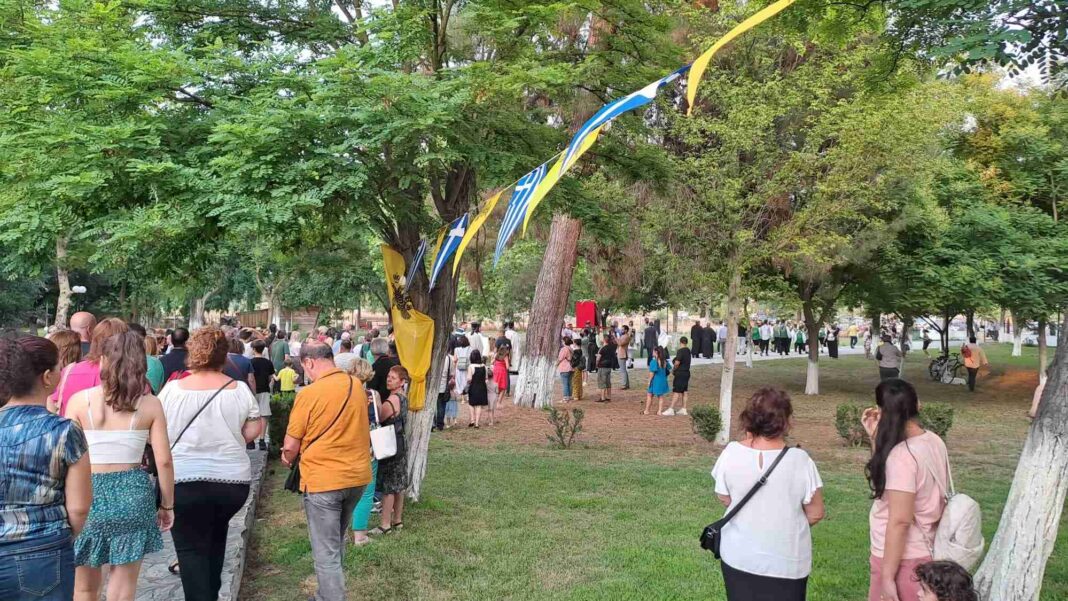 Στην Ακολουθία του Πανηγυρικού Εσπερινού χοροστάτησε ο Σεβασμιώτατος Μητροπολίτης Λαρίσης και Τυρνάβου κ. Ιερώνυμος ενώ αντίστοιχα τη μνήμη της τίμησαν και οι εκπρόσωποι των Αρχών.