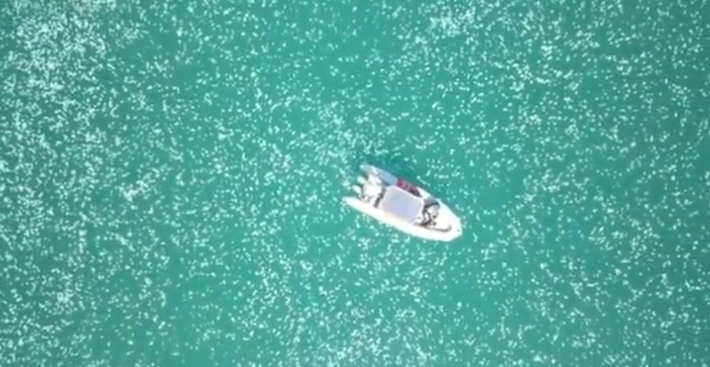 Η Αρχή Φύσης και Πάρκων του Ισραήλ δημοσίευσε φωτογραφίες από το περιβαλλοντικό φαινόμενο με τις εκατομμύρια μέδουσες ανοιχτά των ακτών της Χάιφα.