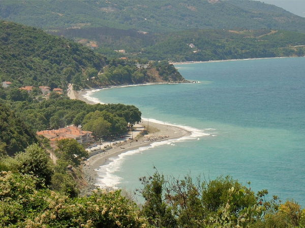 Αρκετά μεγάλη παραλία του Δ. Αγιάς που φτάνει περίπου τα 2 χλμ. Αμμουδερή με λίγο βότσαλο. Ένα κομμάτι της παραλίας είναι σκεπασμένο από πλατάνια που δημιουργεί μια φυσική σκίαση όλες τις ώρες. Ο μοναδικός συνδυασμός του πράσινου με το μπλε, αποτελεί τέλεια επιλογή για ήρεμες και οικογενειακές διακοπές.