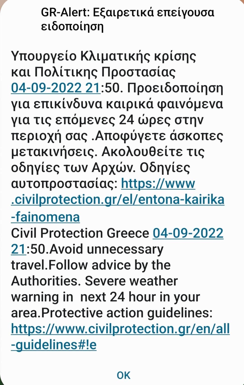 Ειδοποιήσεις λάβανε στα κινητά τους τηλέφωνα πολλοί Λαρισαίοι πριν λίγα λεπτά σχετικά με την εκδήλωση επικίνδυνων καιρικών φαινομένων στην ευρύτερη περιοχή. Σύμφωνα με τους μετεωρολόγους τα φαινόμενα θα διαρκέσουν μέχρι και αύριο.