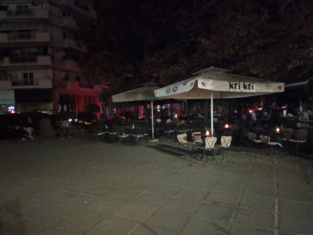 Η πλατεία Εβραίων βυθίστηκε στο σκοτάδι ενώ αρκετοί απόλαυσαν το καφέ τους κάτω από το φως των κεριών ή μικρών φωτιστικών μπαταρίας.