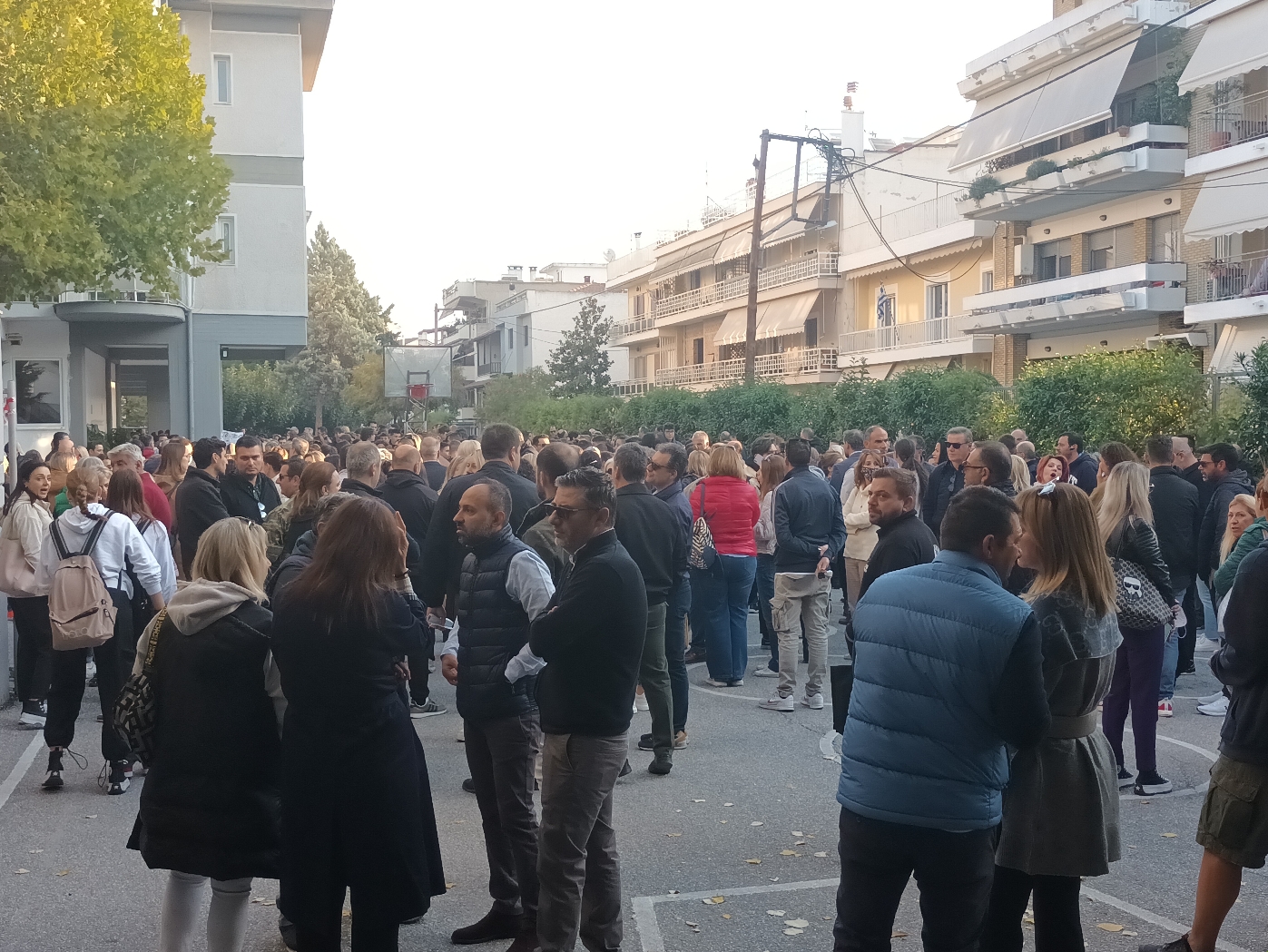 Σήμερα το πρωί μέσα σε ένα εντόνως φορτισμένο κλίμα γονείς και μαθητές βρέθηκαν στον προαύλιο χώρο του σχολείου των Εκπαιδευτηρίων. Οι μαθητές με ζωγραφισμένη στα μάτια τους την αβεβαιότητα σήμερα βίωσαν μια διαφορετική προσευχή που η βουβή σιωπή της εν προκειμένω μαρτυρούσε μια “κραυγή” αγωνίας για το μέλλον τους. Μάλιστα, η η δασκάλα τους Αναστασία Καλαφάτη ζήτησε από τους μικρούς μαθητές να μην δακρύζουν.