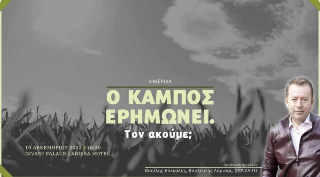 Την ημερίδα διοργανώνει ο πρώην υφυπουργός Αγροτικής Ανάπτυξης και Τροφίμων και νυν βουλευτής Λάρισας του ΣΥΡΙΖΑ – Π.Σ. κ. Βασίλης Κόκκαλης