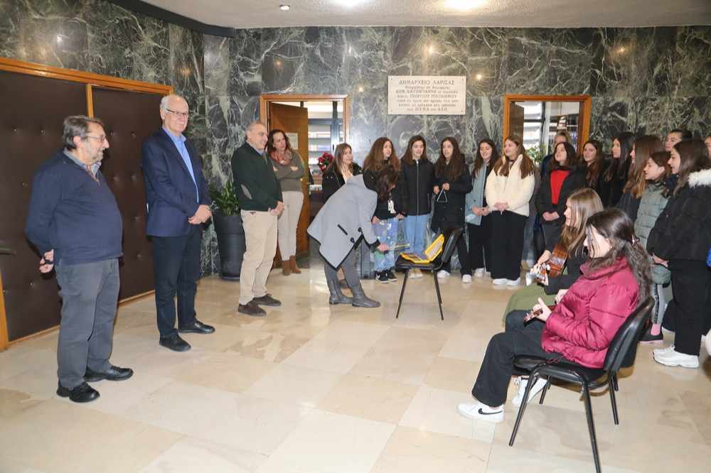 Χριστουγεννιάτικα κάλαντα, ακούστηκαν σήμερα στο Δημαρχείο της Λάρισας. Το πρωί της Τετάρτης μαθητές και εκπαιδευτικοί του 7ου Γυμνασίου, βρέθηκαν στο δημαρχείο για ευχές και κάλαντα.