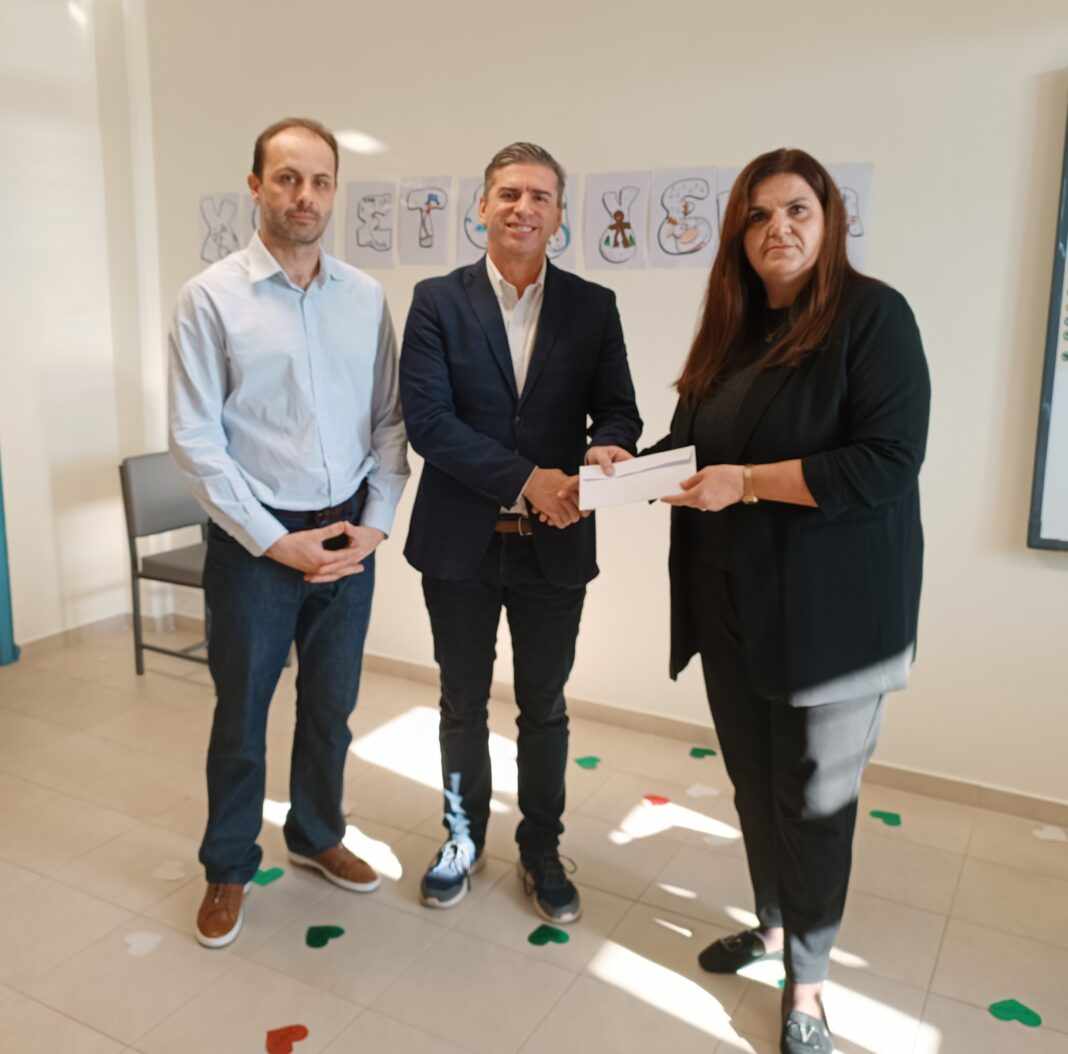 Μετά το τέλος της γιορτής ο Θανάσης Παιδής παρέδωσε δωροεπιταγές στην διευθύντρια του ΕΕΕΕΚ Λάρισας Αντιγόνη Παληκαρά, ώστε να καλυφθούν οι ανάγκες της σχολικής μονάδας και συγκεκριμένα του Τμήματος Αυτόνομης Διαβίωσης.