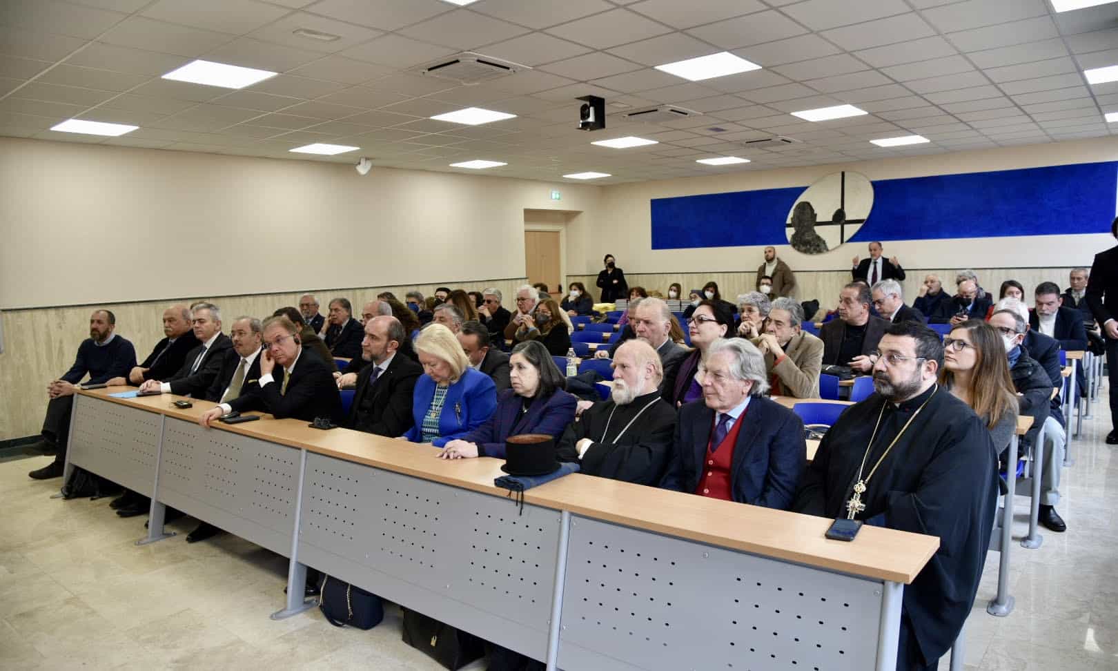 Ο επικεφαλής της ΔΣΟ εξέφρασε τη χαρά για την παρουσία τους «στην αιώνια πόλη, στη Ρώμη, με συναδέλφους βουλευτές από την Ιορδανία, τη Βουλγαρία, την Αλβανία και την Ελλάδα, εδώ στη γενέτειρα του ρωμαϊκού πολιτισμού και δικαίου, που μαζί με την αρχαία ελληνική γραμματεία και την χριστιανική παράδοση συνέθεσαν τα θεμέλια του μωσαϊκού της σύγχρονης Ευρώπης. Χαιρόμαστε, γιατί μας δίνετε την δυνατότητα στο μεγαλύτερο πανεπιστήμιο της Ευρώπης La Sapienza (η Σοφία), να σας παρουσιάσουμε ένα έργο που αφορά La Sapienza del Dio, την Σοφία του Θεού. Άλλωστε, σπεύδω να υποθέσω ότι ο Πάπας Βονιφάτιος το 1303 στην Σοφία του κόσμου, ως προϊόν της Σοφίας του Θεού θέλησε να αναφέρεται το δημιούργημα του, το πανεπιστήμιό σας».