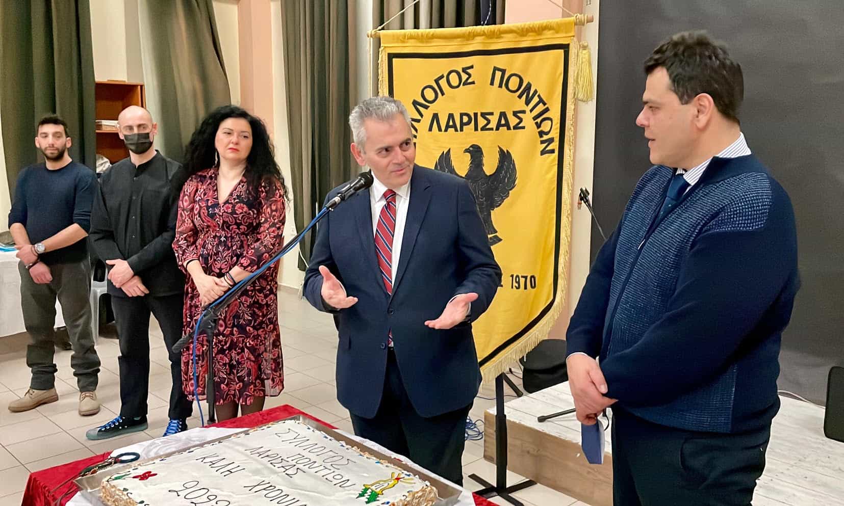 καθιερωμένης βασιλόπιτας του Συλλόγου Ποντίων. Με το Σύλλογο Ποντίων έχουμε μία μακρά και στενή συνεργασία τα τελευταία χρόνια. Εκτιμώ πάρα πολύ την προσπάθεια που κάνετε να μεταλαμπαδεύετε στις νεότερες γενιές, στα παιδιά μας, τα ήθη και τις παραδόσεις μας, τα τραγούδια και τους χορούς μας. Μέσα από τους χορούς και τα τραγούδια ενδυναμώνεται η συναίσθηση του “ανήκειν” στην κοινότητα των Ποντίων, στην κοινότητα του Ελληνικού Γένους». Τα παραπάνω τόνισε ο βουλευτής Λαρίσης της Νέας Δημοκρατίας κ. Μάξιμος Χαρακόπουλος στον χαιρετισμό που κλήθηκε να απευθύνει από τον πρόεδρο του