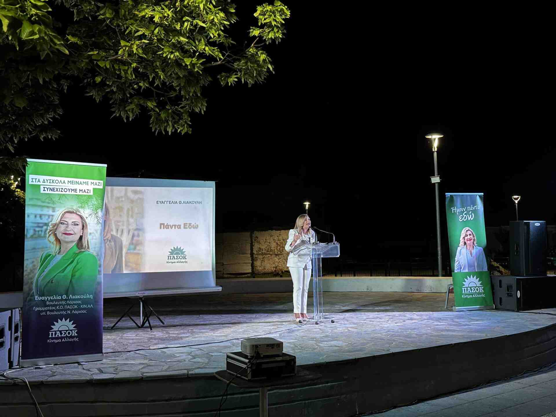 Ένα εντυπωσιακό φινάλε στον μαραθώνιο των μεγάλων προεκλογικών ομιλιών της πραγματοποίησε στο χωριό – γενέτειρά της, η Γραμματέας της Κοινοβουλευτικής Ομάδας του ΠΑΣΟΚ – Κινήματος Αλλαγής και υπ. Βουλευτής Λάρισας, Ευαγγελία Λιακούλη γέννημα θρέμμα αγροτικής οικογένειας του Πλατυκάμπου στο Δήμο Κιλελέρ,