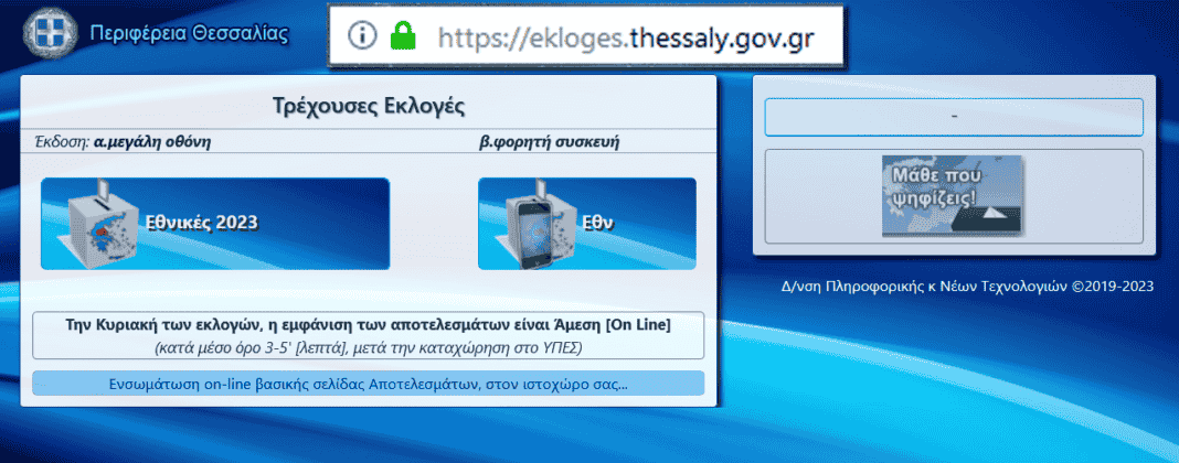 Περιφέρεια Θεσσαλίας: Online μετάδοση εκλογικών αποτελεσμάτων στο ekloges.thessaly.gov.gr