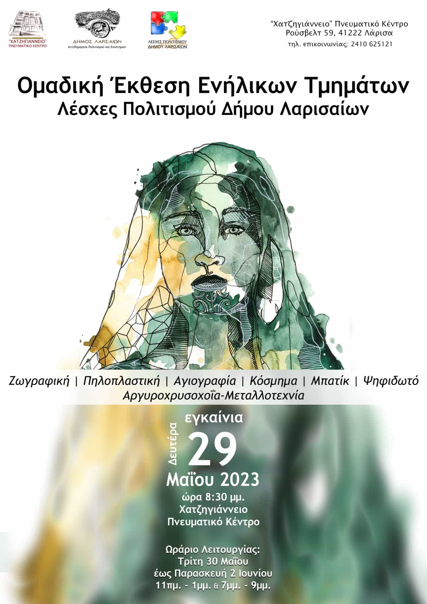 Η Αντιδημαρχία Πολιτισμού και Επιστημών του Δήμου Λαρισαίων, το Χατζηγιάννειο Πνευματικό Κέντρο και οι Λέσχες Πολιτισμού, διοργανώνουν ομαδική έκθεση ζωγραφικής και εφαρμοσμένων τεχνών των τμημάτων ενηλίκων που παρακολουθούν μαθήματα στις Λέσχες Πολιτισμού του Δήμου Λαρισαίων.