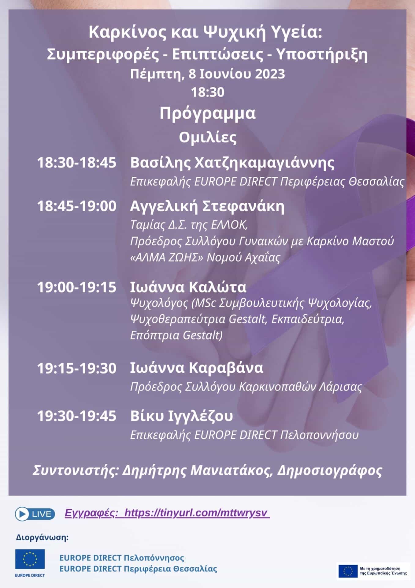 διαδικτυακή εκδήλωση με τίτλο: «Καρκίνος και Ψυχική Υγεία: Συμπεριφορές- Επιπτώσεις-