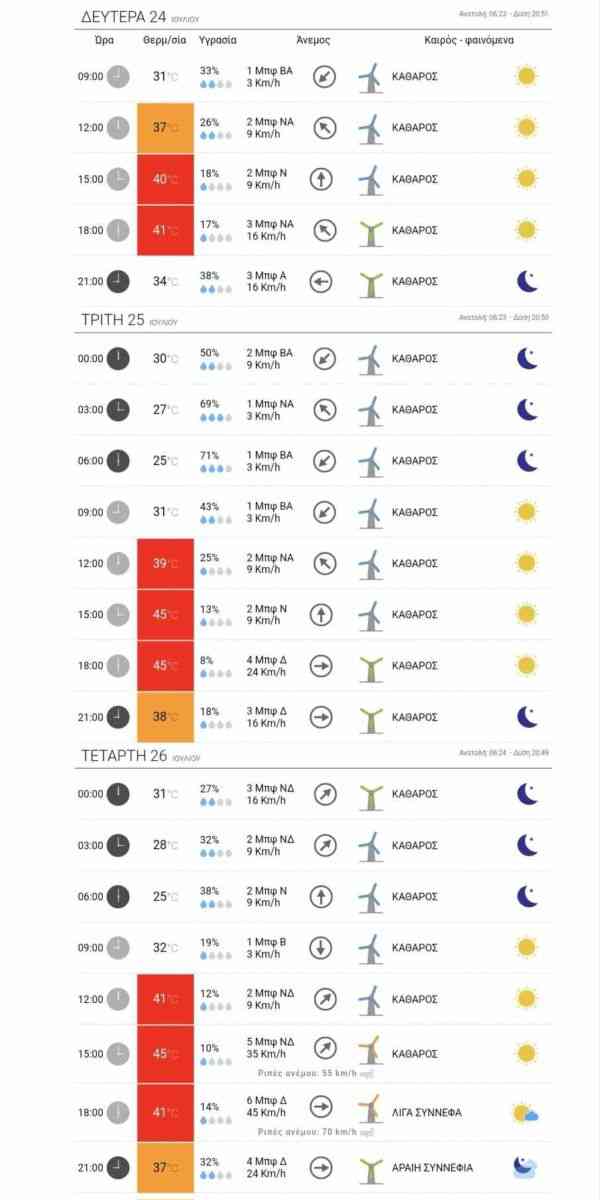 Μετά τη χειρότερη μέρα με τον φετινό καύσωνα που βιώσαμε χθες στο σύνολο σχεδόν της χώρας, σήμερα έρχεται μια ελάχιστη πτώση της θερμοκρασίας. Ωστόσο, τα δύσκολα με τον καύσωνα «Κλέων» δεν τελείωσαν, καθώς από αύριο Τρίτη, έρχεται νέα θερμική έξαρση ακόμη και με 45 βαθμούς.