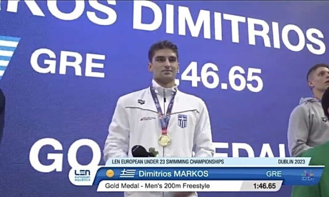 Τεράστια επιτυχία για τα ελληνικά χρώματα στο Ευρωπαϊκό Πρωτάθλημα Κ23 κολύμβησης. Ο Δημήτρης Μάρκος… σάρωσε. Ο 22χρονος πρωταθλητής μας κατέκτησε το χρυσό μετάλλιο στον τελικό των 200μ. ελεύθερο.