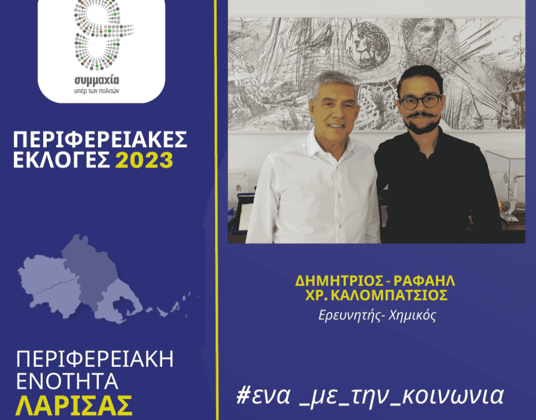 Τον Ερευνητή-Χημικό Δημήτριο-Ραφαήλ Καλομπάτσιο, που κατέρχεται υποψήφιος περιφερειακός σύμβουλος στην Π.Ε. Λάρισας στις αυτοδιοικητικές εκλογές του Οκτωβρίου, καλωσόρισε ο Περιφερειάρχης Θεσσαλίας Κώστας Αγοραστός στον συνδυασμό «Συμμαχία υπέρ των πολιτών» που έχει σταθερά στο επίκεντρο τον άνθρωπο και αγωνίζεται με έργα, δράσεις, πρωτοβουλίες για μια Περιφέρεια χωρίς διακρίσεις και αποκλεισμούς.
