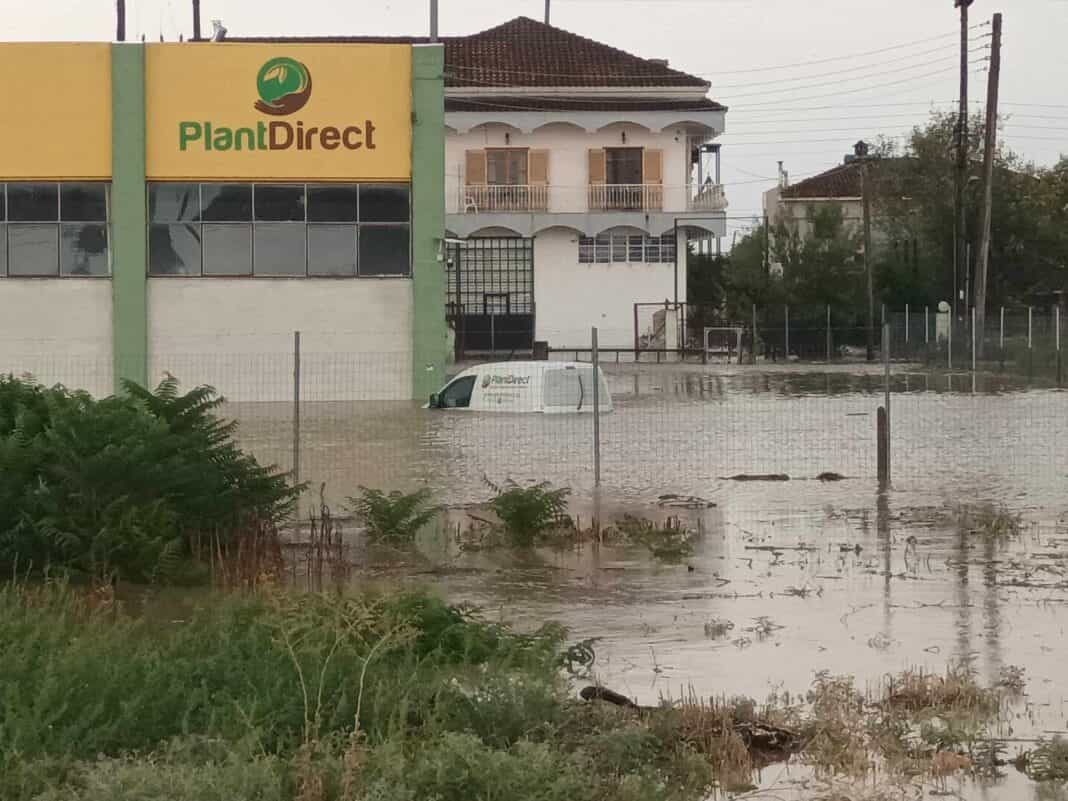 Από τα δεξιά του δρόμου έρχονται νερά από την περιοχή της Χάλκης, ενώ χαρακτηριστική είναι η φωτογραφία του αυτοκινήτου που έχει καλυφθεί από τα νερά. Αντίστοιχα από την αριστερή πλευρά του δρόμου έρχονται υδάτινη όγκοι από την πλευρά του αναχώματος.