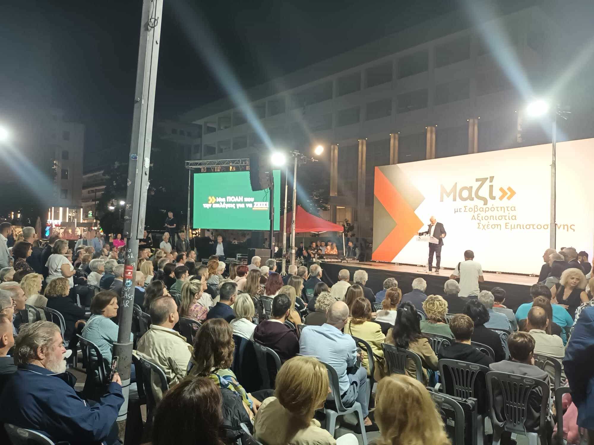 «Παραμείναμε αφοσιωμένοι στο όραμά μας: Να κάνουμε τη ζωή των συμπολιτών μας καλύτερη σε όλα τα επίπεδα» τόνισε μεταξύ άλλων στην κεντρική προεκλογική του ομιλία, που πραγματοποιήθηκε στην Κεντρική Πλατεία, το βράδυ της Παρασκευής, ο δήμαρχος Λαρισαίων, επικεφαλής της «Συμπαράταξης Λαρισαίων» και εκ νέου υποψήφιος δήμαρχος κ. Απόστολος Καλογιάννης