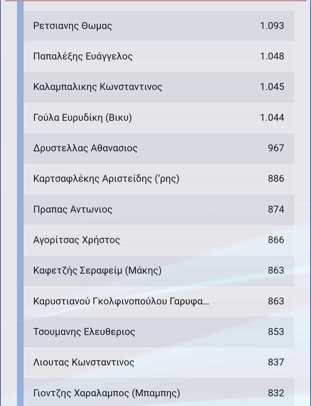 Mε τη μέχρι στιγμής καταμέτρηση του συνόλου των εκλογικών τμημάτων για το δήμο Λαρισαίων ακολουθεί η σειρά σταυροδοσίας των υποψηφίων του κάθε συνδυασμού από το μερικό σύνολο των ψηφοφόρων που συμμετείχαν σε κάθε συνδυασμό.