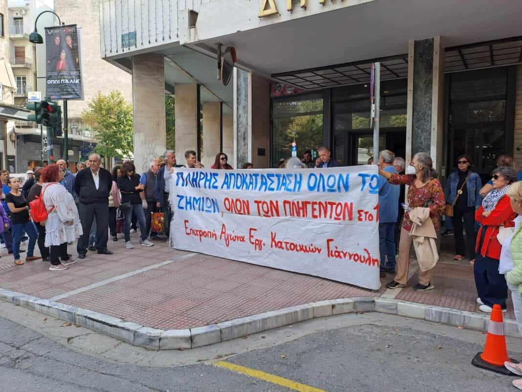 Παρόμοια προβλήματα όμως αντιμετωπίζουν κι άλλες περιοχές του νομού. Πιο συγκεκριμένα, στη σημερινή συγκέντρωση διαμαρτυρίας παρέστησαν οι Επιτροπές Πλημμυροπαθών των Εργατικών Κατοικιών Γιάννουλης (παλιών και νέων), της Φαλάνης, του Αγίου Θωμά και του Κουλουρίου.