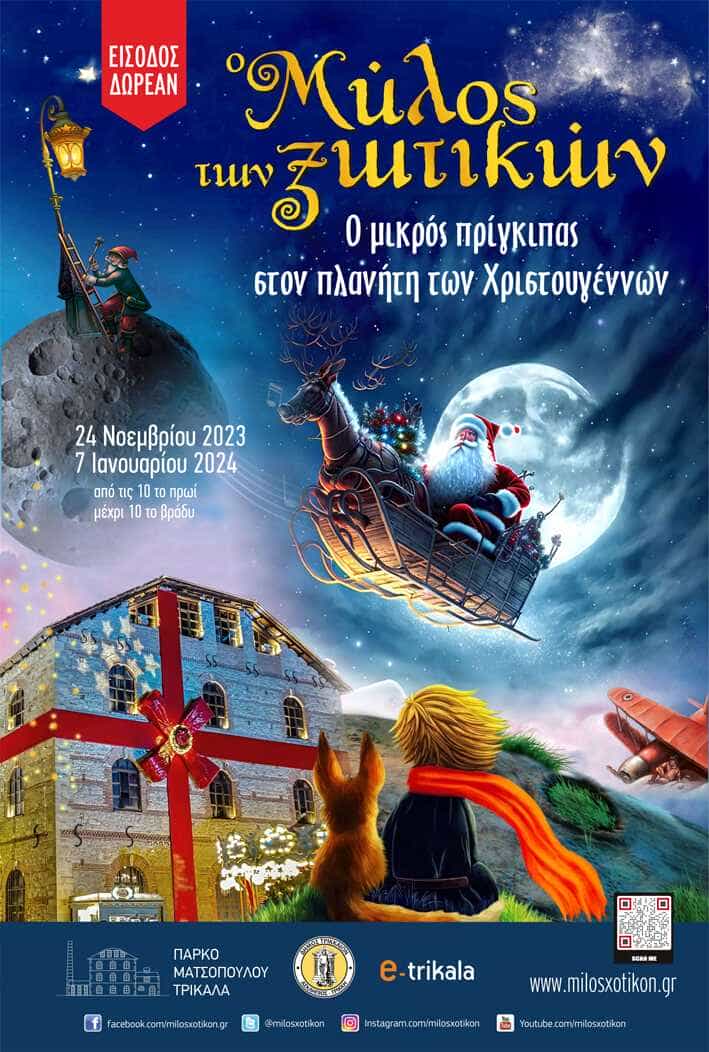 Η οργανωτική επιτροπή του Μύλου των Ξωτικών εστίασε φέτος σε ένα ακόμη συναρπαστικό παραμυθένιο ταξίδι. Το κεντρικό θέμα, πρωτότυπο όπως πάντα, έχει τον τίτλο «Ο μικρός Πρίγκηπας στον πλανήτη των Χριστουγέννων». Η ιστορία γράφεται ως εξής: