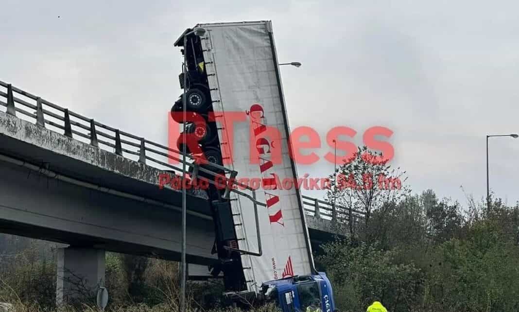 Όπως αναφέρει το rthess.gr, το τροχαίο σημειώθηκε όταν νταλίκα που κινούνταν επίτης εξωτερικής Περιφεριακής Οδού στο ΄θυψος του Καλοχωρίου κάτω από αδιευκρίνιστες συνθήκες, προσέκρουσε στις προστατευτικές μεταλλικές μπάρες και έπεσε από την γέφυρα.