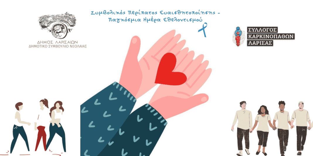 Το Δημοτικό Συμβούλιο Νεολαίας του Δήμου Λαρισαίων στο πλαίσιο της συνεργασίας του με τον Σύλλογο Καρκινοπαθών Λάρισας, θα ενώσουν για ακόμη μια φορά τις δυνάμεις τους και θα συνδιοργανώσουν Συμβολικό Περίπατο Ευαισθητοποίησης στα πλαίσια της Παγκόσμιας Ημέρας Εθελοντισμού (International Volunteer Day), όπως αυτή έχει καθιερωθεί από τον Οργανισμό Ηνωμένων Εθνών, την Τετάρτη 6 Δεκεμβρίου στις 19:00 στο Αρχαίο Θέατρο Λάρισας.