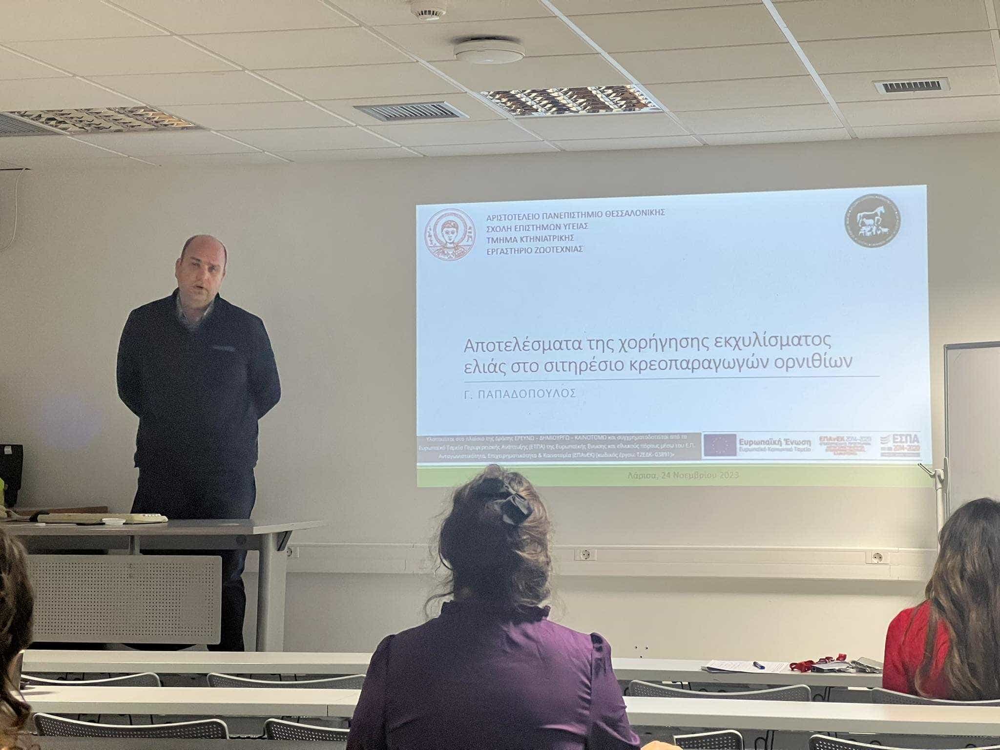 Ολοκληρώθηκε η ημερίδα του έργου OliveFeed «O ρόλος και η σημασία των παραπροϊόντων ελιάς για τη ζωική παραγωγή» η οποία έλαβε χώρα στο Πανεπιστήμιο Θεσσαλίας την Παρασκευή 24 Νοεμβρίου 2023. Το έργο στοχεύει στο σχεδιασμό και την παραγωγή καινοτόμων ζωοτροφών από παραπροϊόντα ελαιουργίας και υλοποιείται από το Σεπτέμβριο 2021.