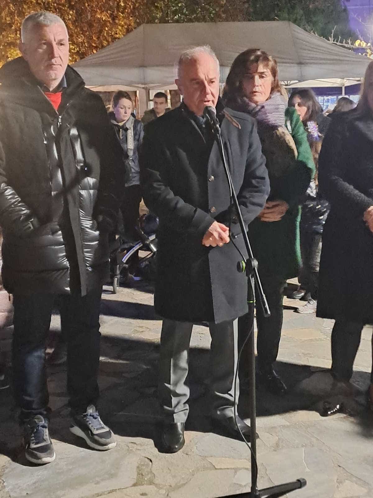 Σύντομο χαιρετισμό απεύθυνε ο Δήμαρχος Τεμπών κ. Γιώργος Μανώλης και κήρυττε την έναρξη των εκδηλώσεων, δίνοντας το σύνθημα για το άναμμα του δέντρου.