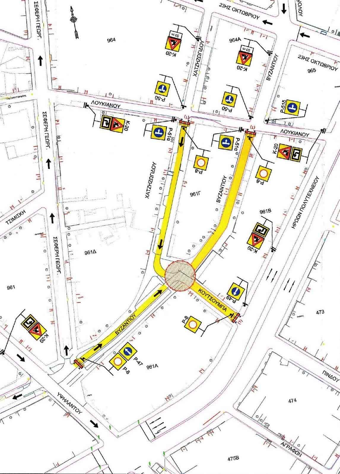 Λουκιανού και Χατζηζωγίδου με Βυζαντίου/Κουτσούμπα. Κατά τη διάρκεια των