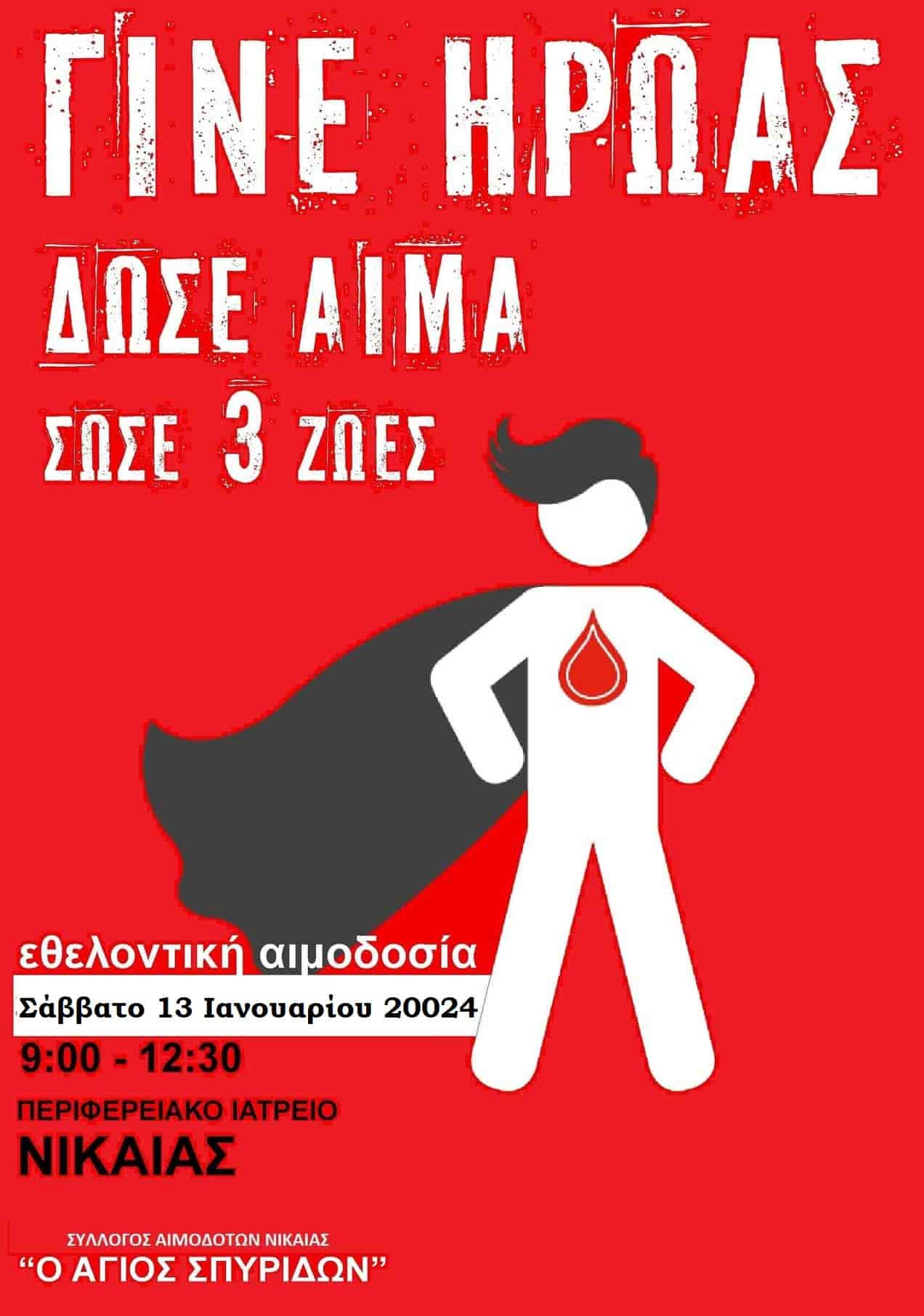 9:00 – 12:30 Αιμοδοσία στο Περιφερειακό Ιατρείο Νίκαιας που