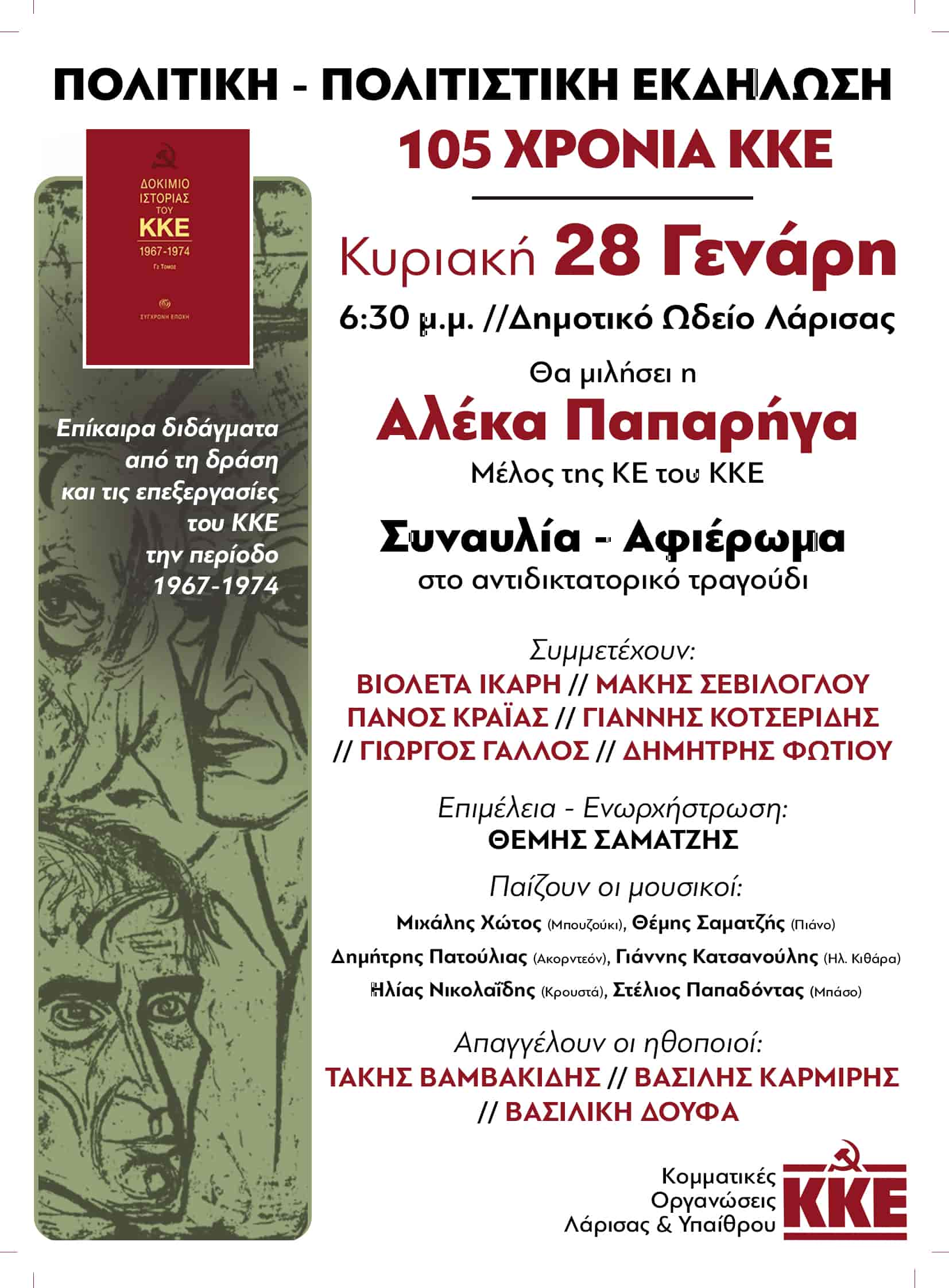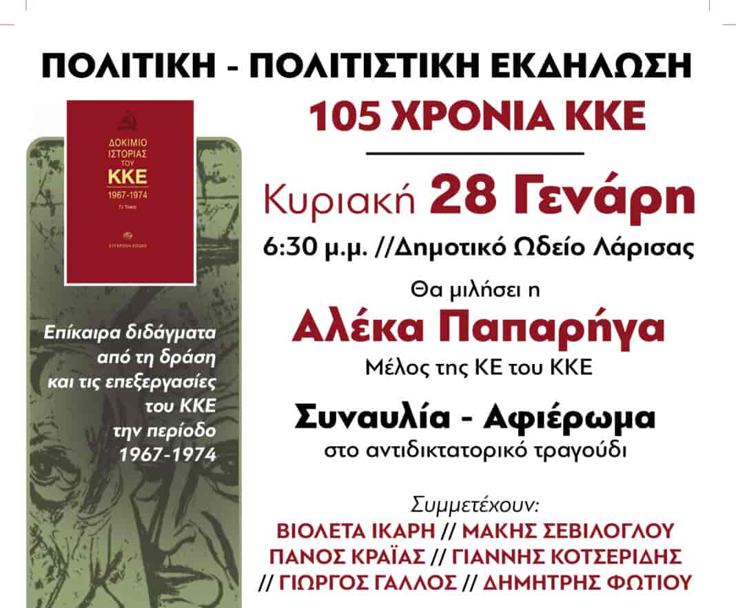 – πολιτιστική εκδήλωση αφιερωμένη στα 105 χρόνια του ΚΚΕ.