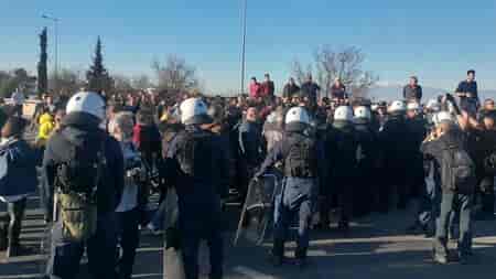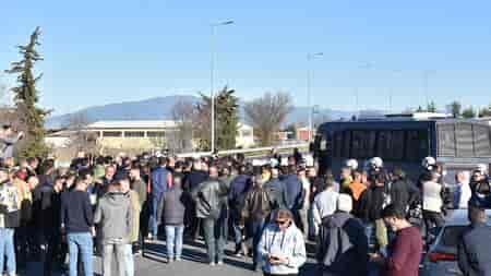 Στο σημείο υπάρχουν παρατεταγμένες δυνάμεις των ΜΑΤ, εμποδίζοντας τους βιοπαλαιστές αγρότες και κτηνοτρόφους να βγούν στην Εθνική Οδό.