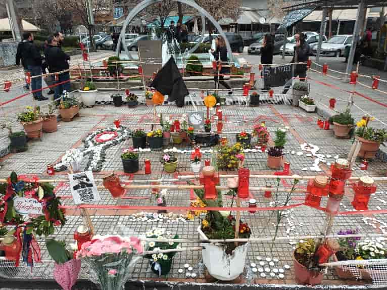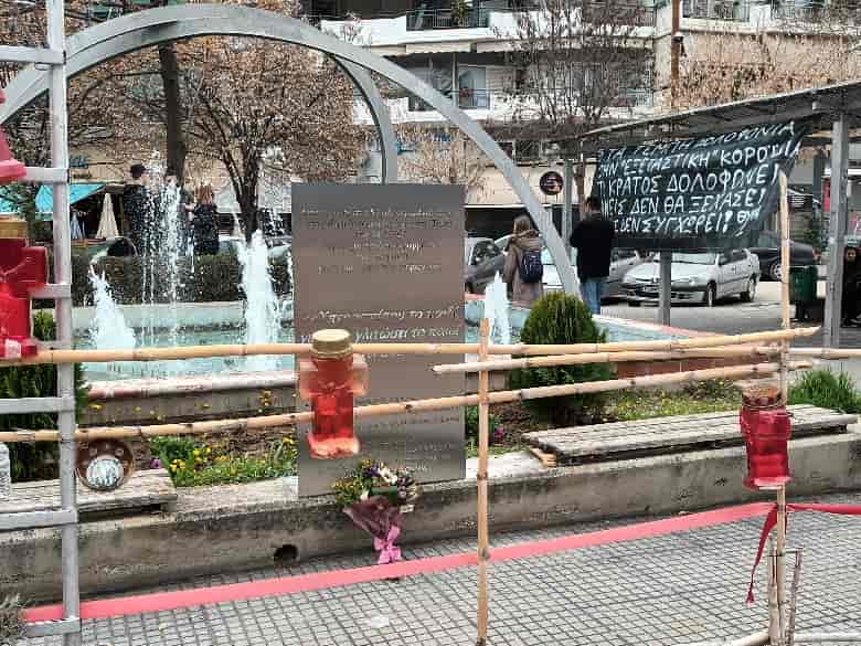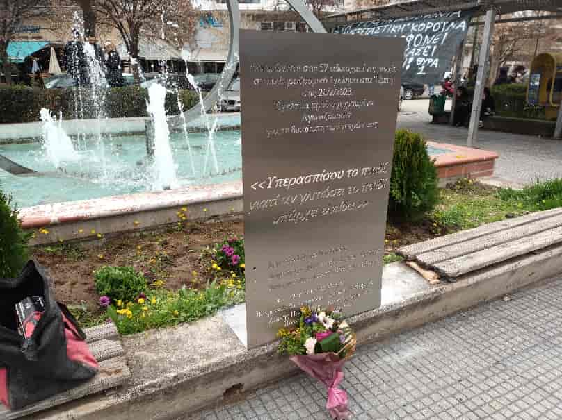 Στην συνέχεια ακολούθησαν τα αποκαλυπτήρια μνημείου στη μνήμη των 57 αδικοχαμένων ανθρώπων στο πολύνεκρο έγκλημα στα Τέμπη από το Εργατικό Κέντρο Λάρισας. Το μνημείο στήθηκε πάνω στην πλατεία του ΟΣΕ και μπροστά από το πρόχειρο μνημείο που έχουν δημιουργήσει και συντηρούν φίλοι, συγγενείς και γονείς των θυμάτων.