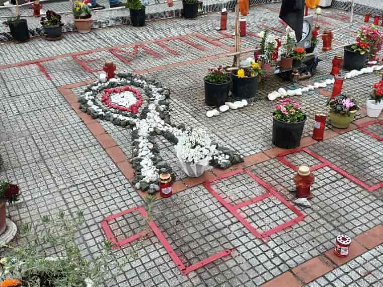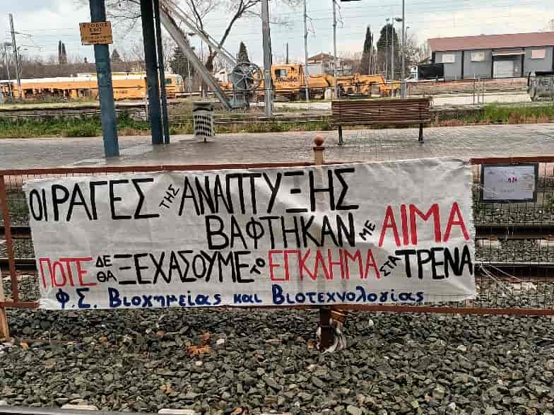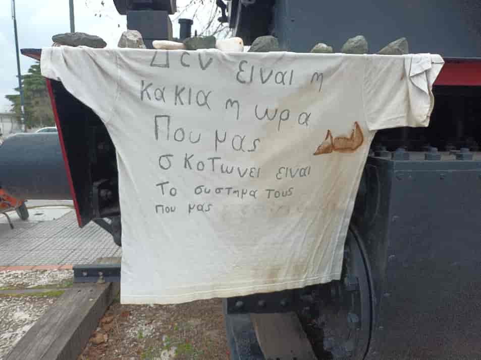 «Αφιερώνεται στις 57 αδικοχαμένες ψυχές στο σιδηροδρομικό έγκλημα στα Τέμπη στις 28/2/2023.