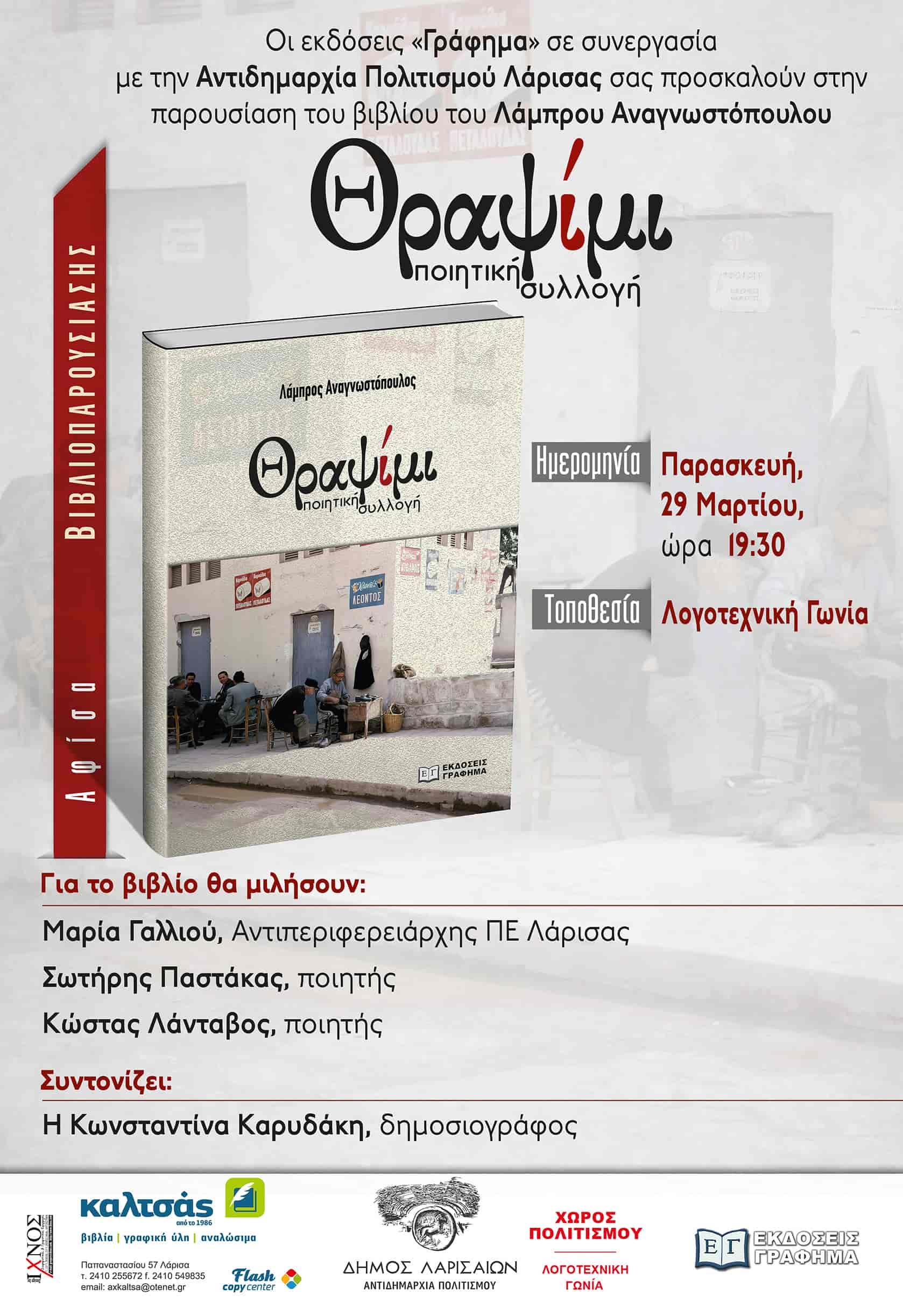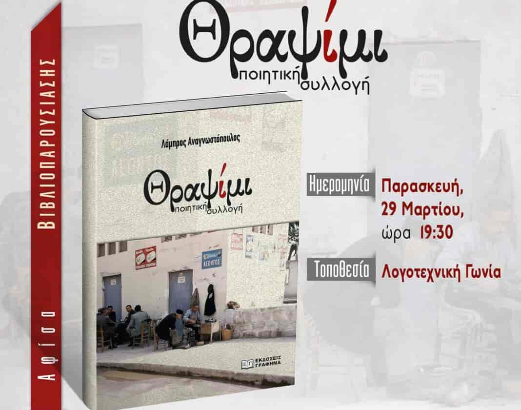Την ποιητική συλλογή του Λάμπρου Αναγνωστόπουλου με τίτλο «Θραψίμι» παρουσιάζουν