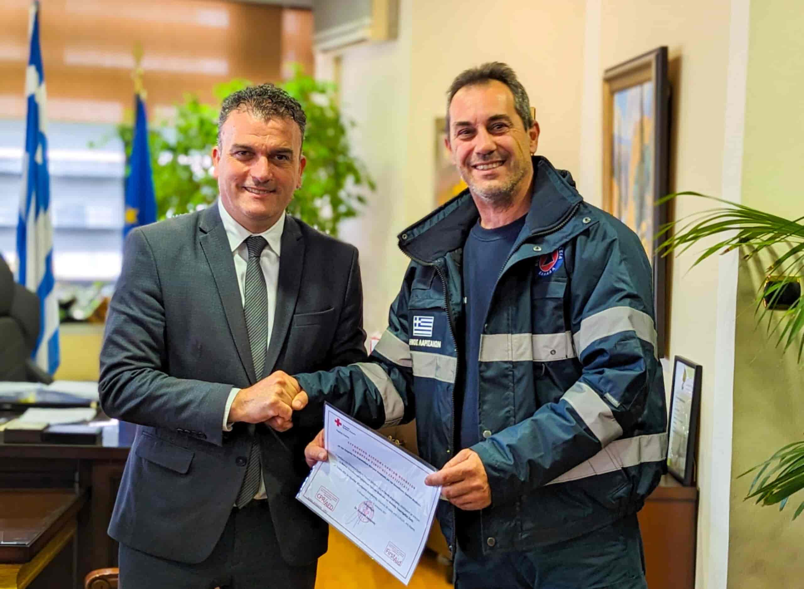 Στην παροχή Πρώτων Βοηθειών, στο πλαίσιο αντιμετώπισης έκτακτων καταστάσεων και περιστατικών, πιστοποιήθηκαν οι υπάλληλοι του Τμήματος Πολιτικής Προστασίας του Δήμου Λαρισαίων. Σε ειδική συνάντηση, στο Δημαρχείο Λάρισας, πραγματοποιήθηκε η απονομή των πιστοποιητικών εκπαίδευσης, από τον Δήμαρχο Λαρισαίων, κ.Θανάση Μαμάκο.