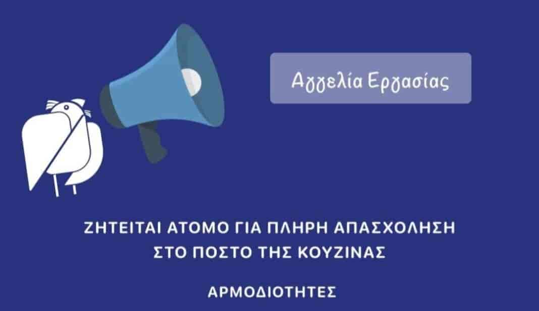 Ζητείται άτομο για πλήρη απασχόληση στο πόστο της κουζίνας για το εργαστήριο της Καρδίτσας.