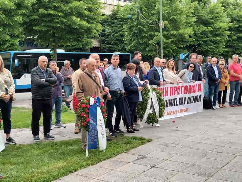 Λάρισα: Με κατάθεση στεφάνων στην πλατεία Ρήγα Φεραίου της Λάρισας τίμησε την Εργατική Πρωτομαγιά του Νομαρχιακό Τμήμα της ΑΔΕΔΥ (φωτό)