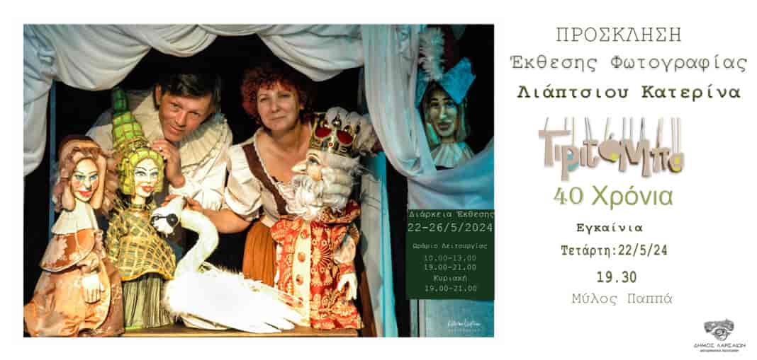 “Τιριτόμπα 40 χρόνια” είναι ο τίτλος της έκθεσης φωτογραφίας της Κατερίνας Λιάπτσιου που εγκαινιάζεται την Τετάρτη 22 Μαϊου 2024, στις 19.30 στο Μύλο του Παππά, στο πλαίσιο του 9ου Φεστιβάλ Κουκλοθεάτρου