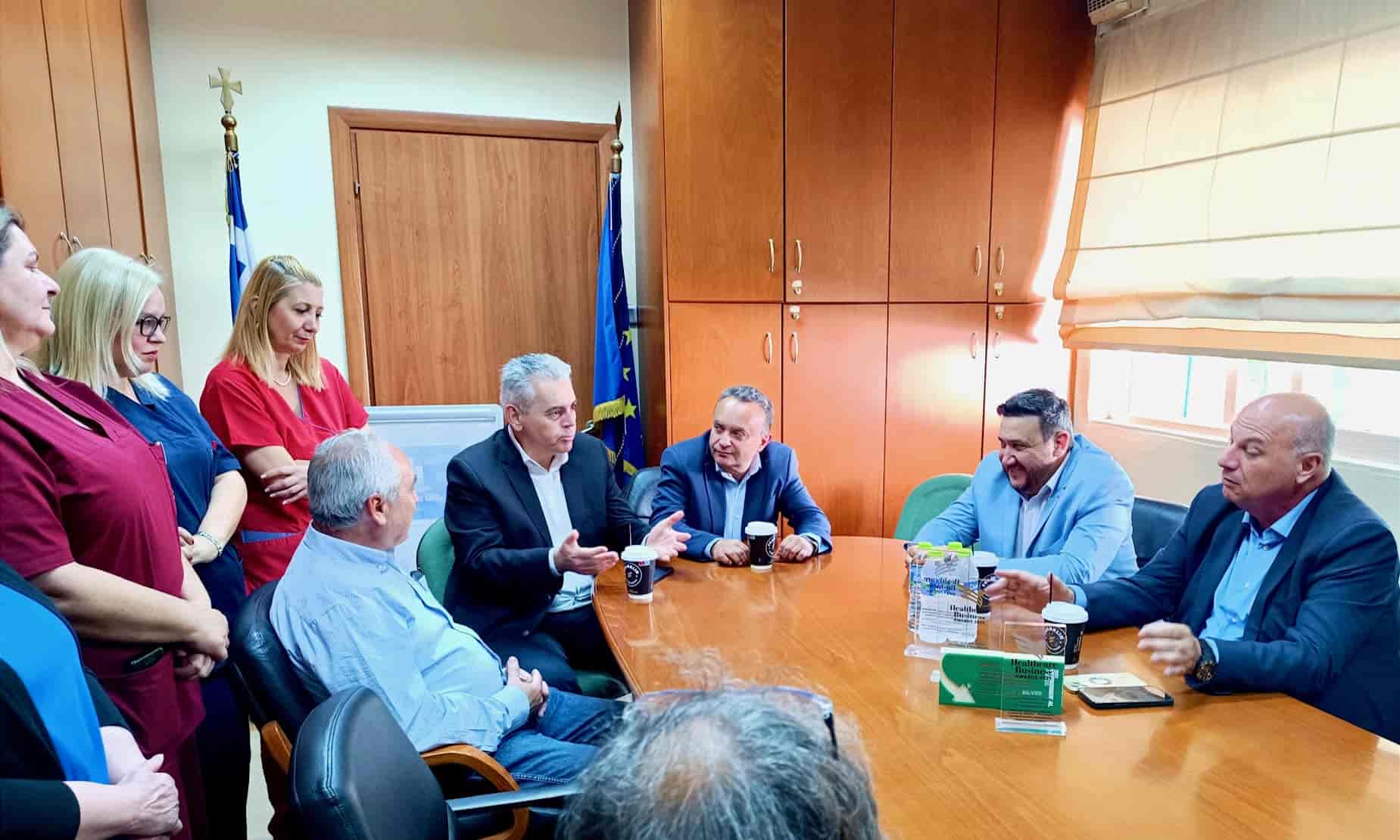 Ο Θεσσαλός πολιτικός συνόδευσε το κυβερνητικό κλιμάκιο  στο Γενικό Νοσοκομείο Λάρισας όπου πραγματοποιήθηκε ενημερωτική συνάντηση με την διοίκηση και εκπροσώπους του ιατρικού και νοσηλευτικού προσωπικού του νοσοκομείου για τα θέματα που τους αφορούν. Στη συνέχεια επισκέφθηκαν το εργοστάσιο της Intercom Foods, που πρωτοστατεί στον τομέα της επεξεργασίας τροφίμων και έχει έντονη εξαγωγική δραστηριότητα, απορροφώντας σημαντικότατο μέρος της τοπικής παραγωγής αγροτικών προϊόντων, όπως φρούτα και ελιές. Κατόπιν, επισκέφθηκαν την πτηνοτροφική μονάδα Ζιώγα, μια επίσης δυναμική και σύγχρονη επιχείρηση εκτροφής κοτόπουλων  που επεκτείνεται διαρκώς. Τέλος, το κυβερνητικό κλιμάκιο κατέληξε στο δημαρχείο του Δήμου Κιλελέρ, όπου είχε συνάντηση με τον Δήμαρχο κ. Θανάση Νασιακόπουλο και δημοτικούς συμβούλους, ενώ στη συνέχεια πραγματοποιήθηκε και σύσκεψη με κτηνοτρόφους της περιοχής για να συζητηθούν τα θέματα που τους απασχολούν.