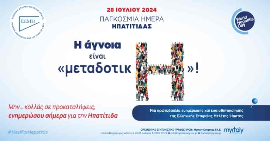 Παγκόσμια Ημέρα Ηπατίτιδας- World Hepatitis Day, έχει οριστεί η 28η Ιουλίου 2024 και η Ελληνική Εταιρεία Μελέτης Ήπατος – Ε.Ε.Μ.Η. για 3η συνεχόμενη χρονιά, διοργανώνει διάφορες δράσεις ενημέρωσης και ευαισθητοποίησης για τις ιογενείς Ηπατίτιδες.