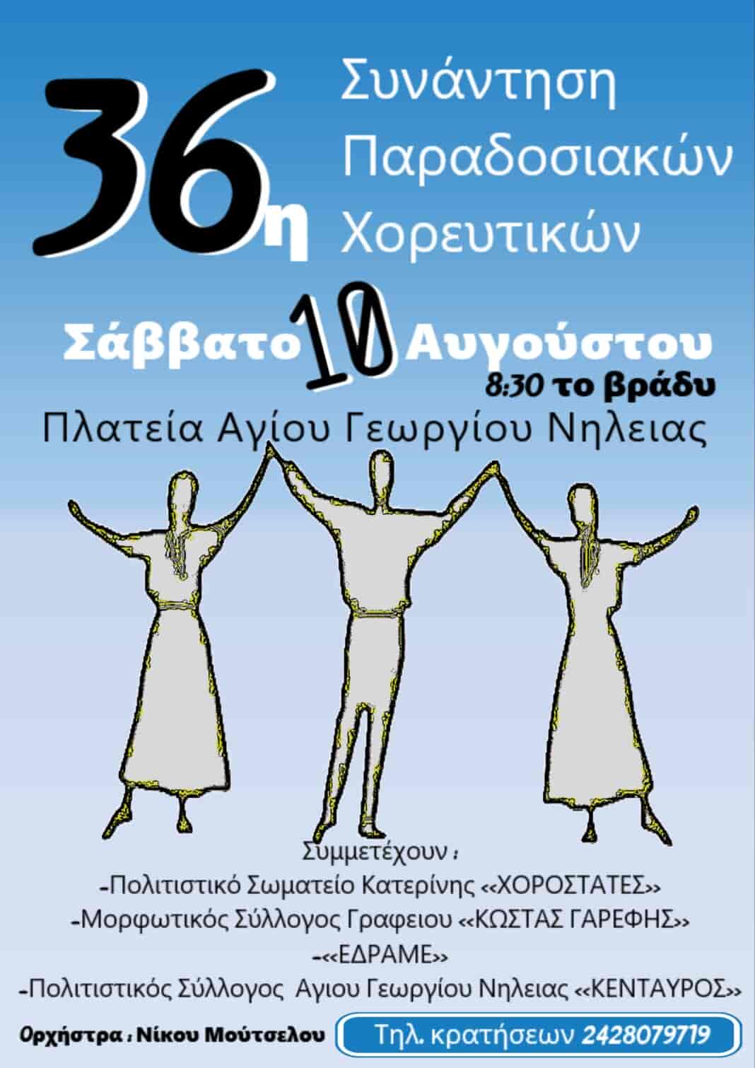 ο Πολιτιστικός Σύλλογος Αγιου Γεωργίου Νηλειας << ΚΕΝΤΑΥΡΟΣ>> , διοργανώνει για 36η συνεχόμενη χρονιά στις 10 Αυγούστου στις 8:30 το βράδυ ,