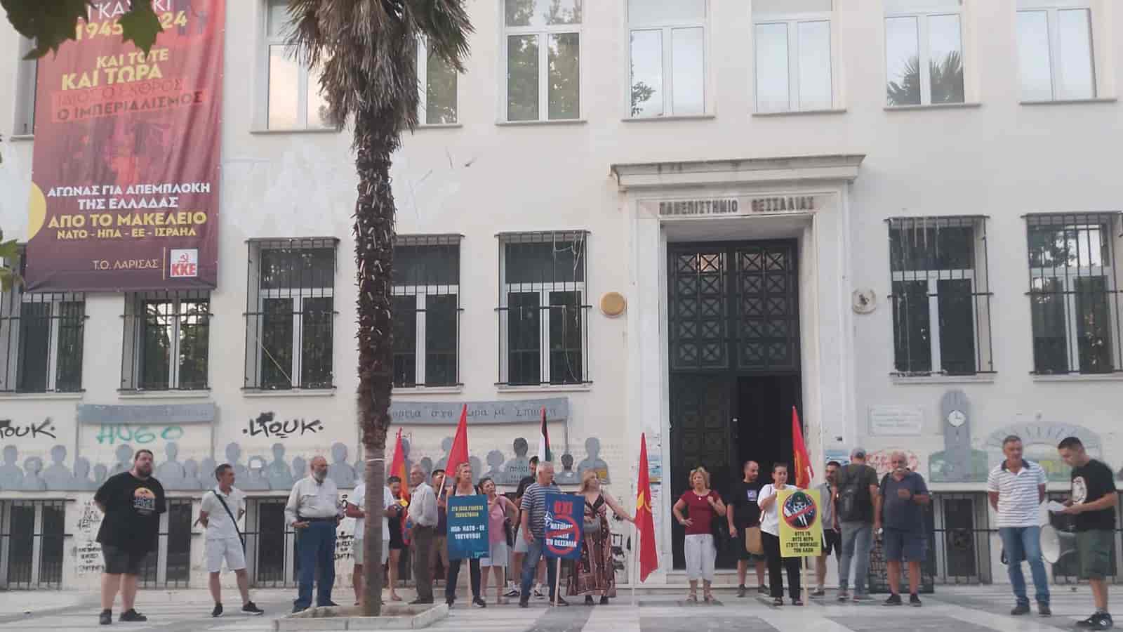 Στην παρέμβαση που έγινε μίλησε ο Δημήτρης Τζιμούλης, μέλος της ΤΕ Λάρισας του ΚΚΕ.