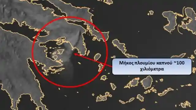 Όπως φαίνεται, με τη βοήθεια των ενισχυμένων βορειοανατολικών ανέμων ο καπνός, έως τις 18:00 ώρα Ελλάδος είχε ταξιδέψει περίπου 100 χιλιόμετρα.