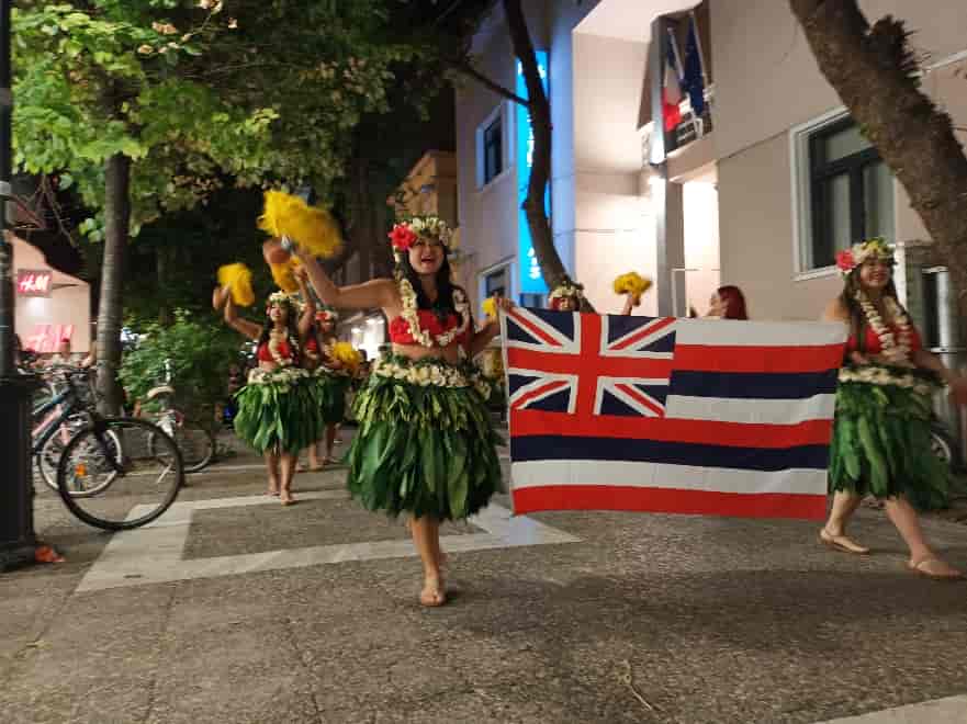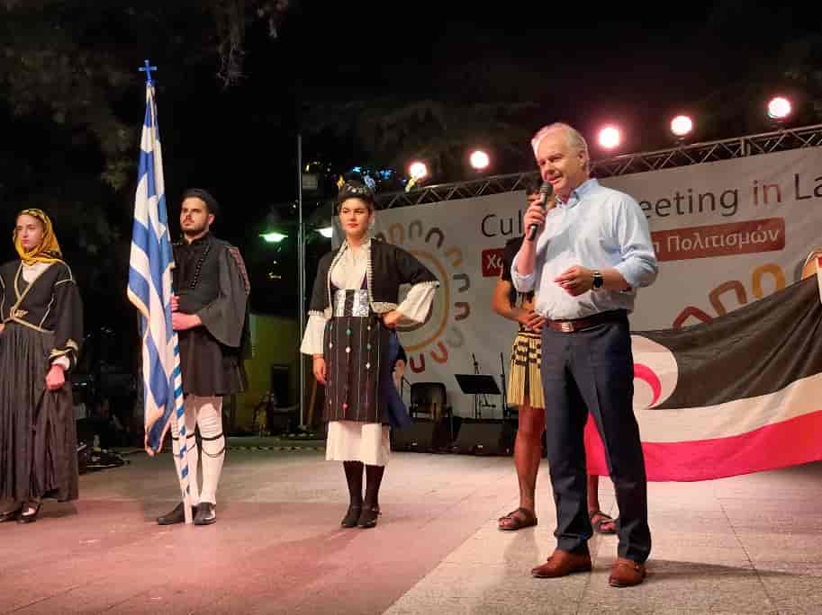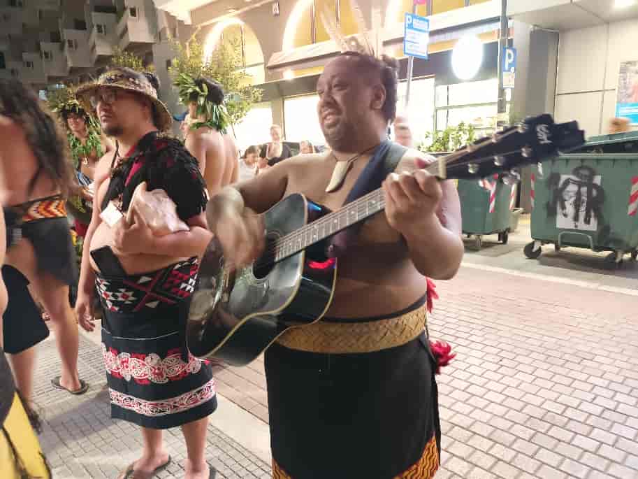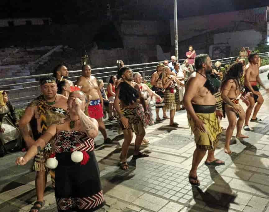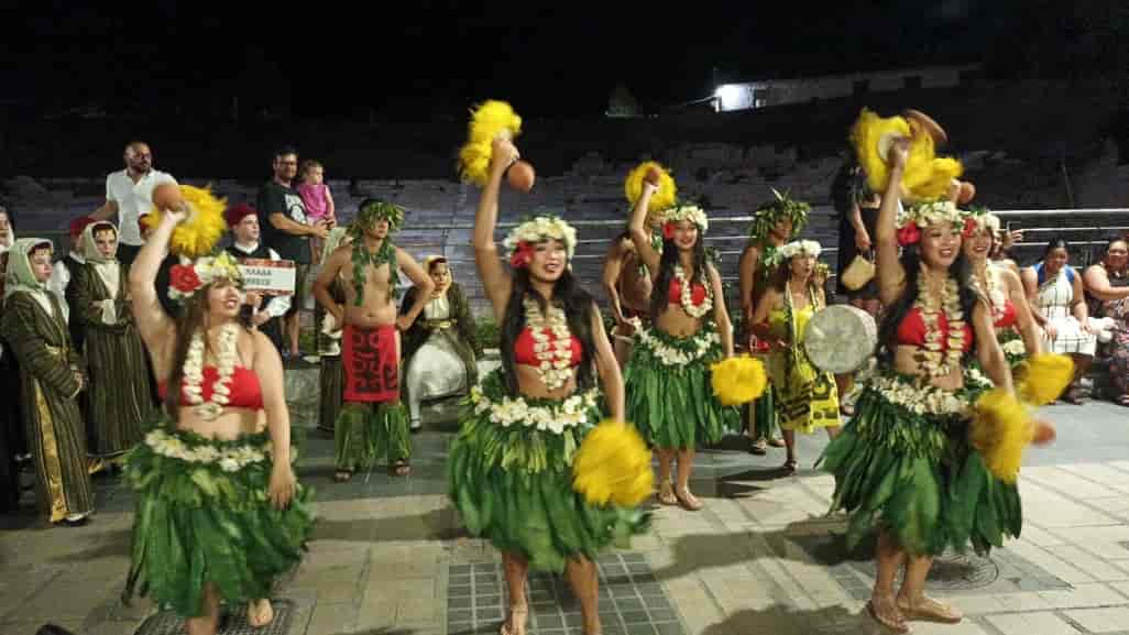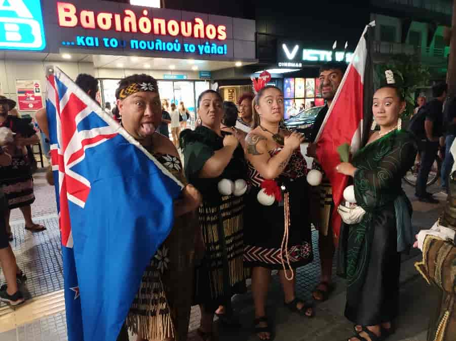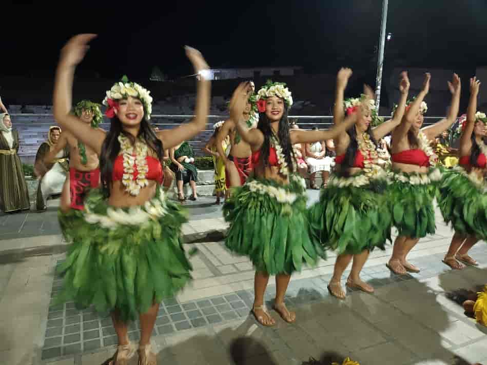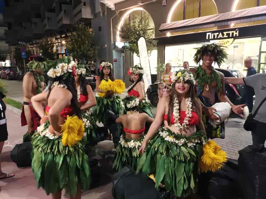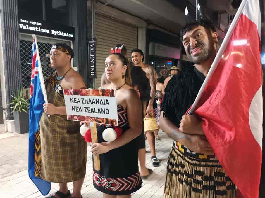 50 χορευτές και μουσικοί από τη Νέα Ζηλανδία και τη Χαβάη ξεκίνησαν από την αρχή της οδού Κούμα και διέσχισαν τους κεντρικούς δρόμους της πόλης υπό τους ήχους παραδοσιακών οργάνων. Μπροστά στο Αρχαίο Θέατρο της Λάρισας χόρεψαν παραδοσιακούς χορούς τραβώντας τα βλέμματα των λαρισαίων περαστικών. Στην συνέχει η πομπή κατευθύνθηκε στην Κεντρική Πλατεία όπου και ολοκληρώθηκε με ομιλίες και χορευτικά η έναρξη της όμορφης αυτής εκδήλωσης. Από τη Νέα Ζηλανδία συμμετείχε η χορευτική ομάδα Wheiao Haka και από την Χαβάη η Hawaiian Pacific Magic.