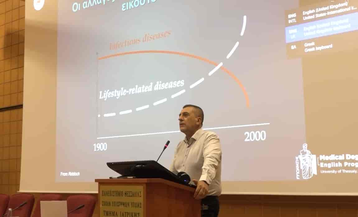 Στον γνώριμο για τον ίδιο, χώρο του αμφιθεάτρου «Ιπποκράτης», κι αφού στον χαιρετισμό του υπογράμμισε τη σημασία μιας εποικοδομητικής επικοινωνίας της Ιατρικής Σχολής του Πανεπιστημίου Θεσσαλίας με την Περιφέρεια Θεσσαλίας και την κοινωνία της Λάρισας, ο κ. Κουρέτας τόνισε την ανάγκη ενίσχυσης και προστασίας της δημόσιας Υγείας προχώροντας σε μία σύντομη διάλεξη για τη μεγάλη πρόκληση του 21ου αιώνα: τη σύγχρονη νόσο της παχυσαρκίας.