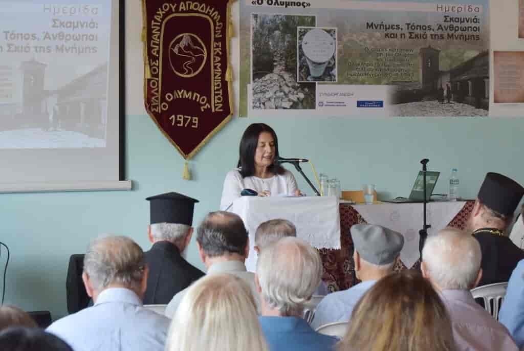 Η ημερίδα με τίτλο «Σκαμνιά: Μνήμες, Τόπος, Άνθρωποι και η Σκιά της Μνήμης», πραγματοποιήθηκε στις 25 Αυγούστου 2024, στο συμβολικό χώρο του Δημοτικού σχολείου του χωριού, το οποίο διαμορφώθηκε γιορτινό για μια ημέρα-με αίθουσες, εργασιών ημερίδας και έκθεσης Μουσειακού υλικού της Παλιάς Σκαμνιάς, για να στεγάσει σε μια ατμόσφαιρα κοινότητας, τις μνήμες από το παρελθόν αλλά και την ιερά Μνήμη του τόπου…