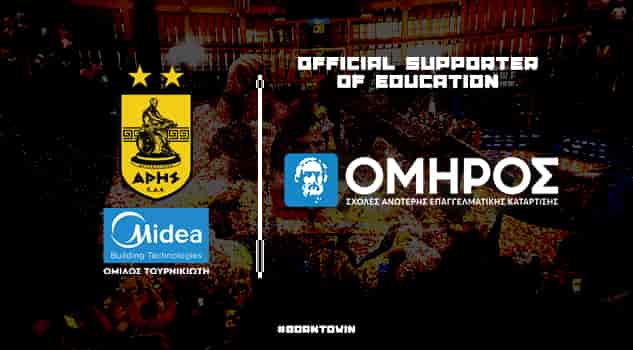 Οι Σχολές Ανώτερης Επαγγελματικής Κατάρτισης ΟΜΗΡΟΣ ανανέωσαν τη στρατηγική συνεργασία τους με την ΚΑΕ ΑΡΗΣ Midea για την αγωνιστική περίοδο 2024-2025, συνεχίζοντας την επιτυχημένη πορεία τους ως Επίσημος Υποστηρικτής Εκπαίδευσης. Η συνεργασία εστιάζει στην υλοποίηση κοινών εκπαιδευτικών δράσεων, πρωτοβουλιών εταιρικής κοινωνικής ευθύνης, διαγωνισμών και εκδηλώσεων, με σκοπό την ενίσχυση της αλληλεπίδρασης μεταξύ των σπουδαστών και του κόσμου του αθλητισμού.