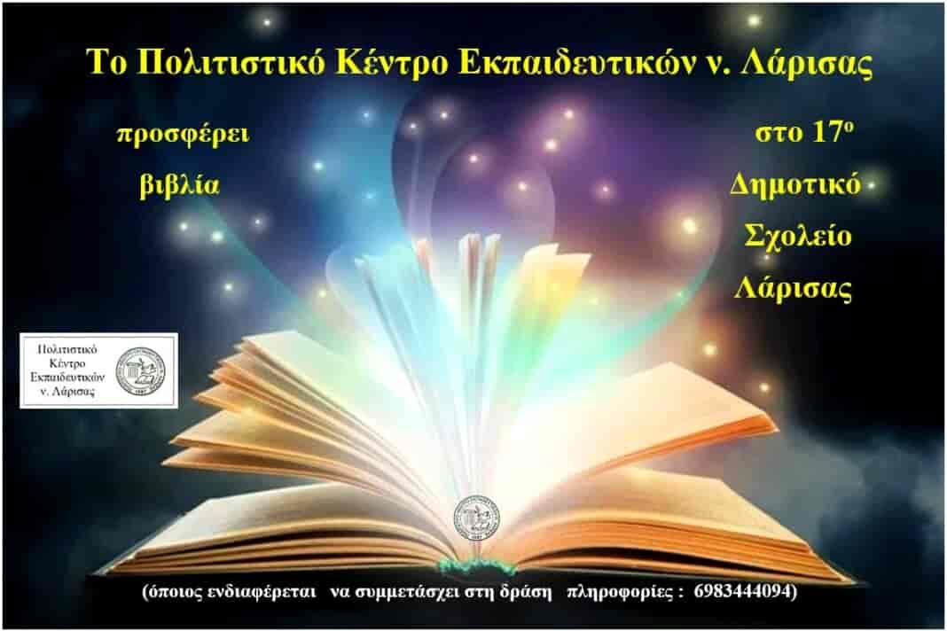 Το Πολιτιστικό Κέντρο Εκπαιδευτικών νομού Λάρισας – ΠΟΚΕΛ θα προσφέρει βιβλία στο 17ο Δημοτικό Σχολείο Λάρισας, μετά από πρωτοβουλία της εκπαιδευτικού Έλλης Ζαχαριά και πρόσκληση της διευθύντριας Ελένης Μπακάλμπαση και του Συλλόγου Διδασκόντων, προκειμένου να εμπλουτισθεί η βιβλιοθήκη του σχολείου με νέους τίτλους βιβλίων.