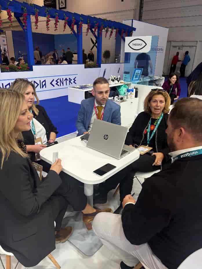 Ιδιαίτερη έμφαση δόθηκε επίσης στην εσωτερική συνέργεια των εκθετών της Θεσσαλίας. Στο πλαίσιο αυτό, πραγματοποιήθηκε παραγωγική συζήτηση σε θερμό κλίμα με τον Δήμαρχο Σκιάθου, κ. Θοδωρή Τζούμα, τον Προϊστάμενο Τουρισμού του Δήμου Βόλου κ. Γιώργο Παπαμακάριο, τον Εντεταλμένο Σύμβουλο Τουρισμού Σκοπέλου, κ. Γιώργο Παπαδαυίδ, την Εντεταλμένη Περιφερειακή Σύμβουλο Βορείων Σποράδων κα Αμαλία Γραβάνη, την Αντιπεριφερειάρχη Τουρισμού, κα Νατάσα Αδαμοπούλου και τη Μάγια Τσόκλη, για μία συντονισμένη προσπάθεια υποστήριξης των προορισμών από τη Περιφέρεια.